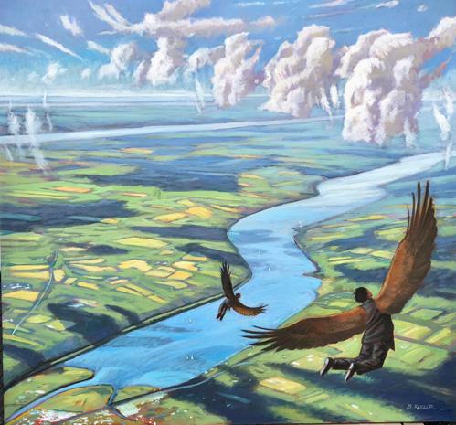 "Icarus and Daedelus over Ithaca" Oil on linen 36" x 40" $5400