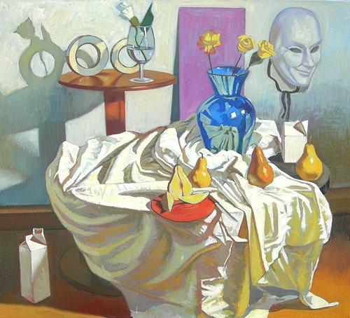 "Four Pears, Four Roses" oil, 36" x 40" $5,400