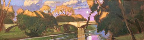 "May Moonrise- Brandywine River, Chads Ford, PA" Oil on linen on panel 14" x 48" $3400
