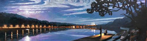 "Schuylkill Nocturne" Oil on linen on panel 14" x 48" $3800