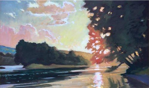 "Golden River Light- August" Oil on canvas on panel 16" x 26" $1800