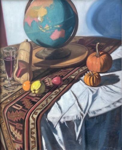 "Still Life Arranged on a Kilim" Oil on linen 40" x 32" $4400