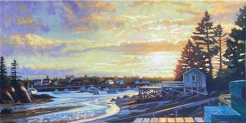 "October Glow- Low Tide, Corea, Maine" Oil on linen on panel 20" x 40" $3800
