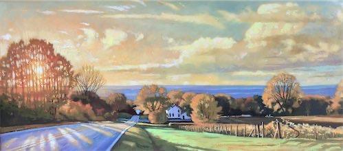 "October Evening Light- Over Senaca on the Searsburg Road" OIl on linen on panel 20" x 40" $3400 SOLD