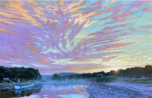"Into the Mist- Susquehanna July Evening" Oil on linen 26" x 40" $4,400