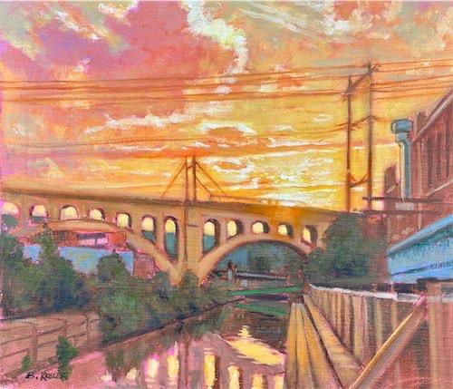 "May Sunset- Manayunk, PA" Oil on linen on panel 18" x 20" $1800