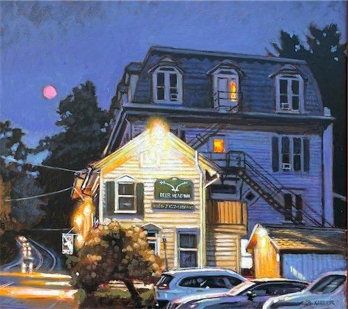 "Blood Moon- Deer Head Inn, Nocturne" Oil on panel 18" x 20" $1800
