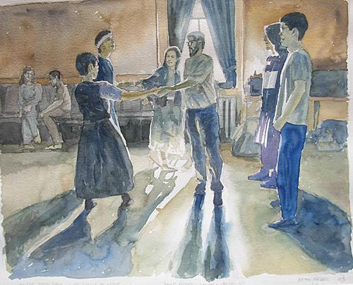 "Waiting Their Turn - Dance Flurry Contra" Watercolor 18" x 21 1/2"