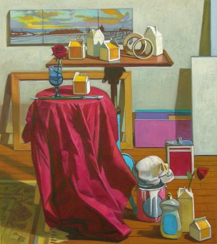 Vanitas With Cartons, oil, approx. 47" x 41" $8400