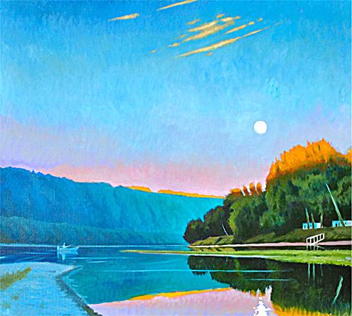 "Susquehanna July Moon- near Wyalusing, PA" Oil on linen 36" x 40" $5,400