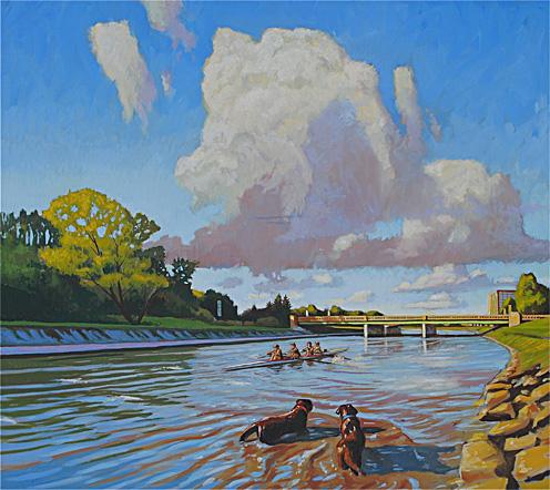 "Inlet Afternoon, with Labradors" Oil on linen 36" x 40" $5,400 SOLD