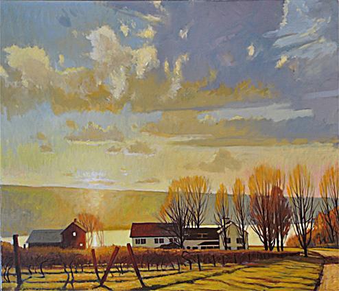 “October, Seneca Gold, Burdett, NY” Oil on Linen 26" x 30" $2,800