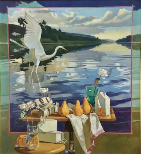 "River Still Life with White Heron" oil 47" x 41" $6,400