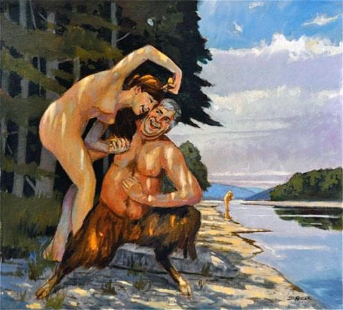 "Satyr and Nymph" Oil on linen on panel 18" x 20" $1,800