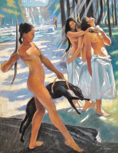 "Diana with Nymphs" Pastel on paper 34" x 26" $2,800