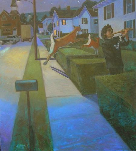 "Allegory of Protection, River Town Nocturne" oil, 54" x 48"