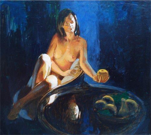 "Umbrian Bacchante with Apple" Oil on linen on panel 18" x 20". $1800