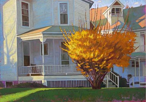 "Front Street Forsythia- Vernal Light" Oil on linen 40" x 44" $8,400