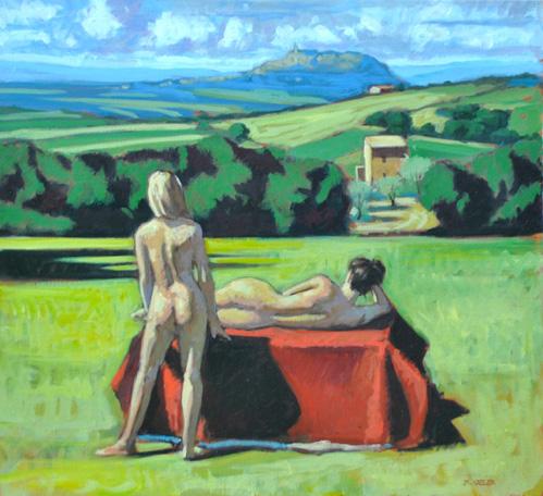 "Two Models in Umbria" Oil on linen 24" x 26" $2,200