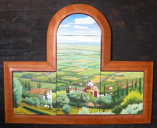 "Cortona Polyptych - View of St Calcianio with Lake Trasimeno" oil, 23" x 30" $2,600 SOLD